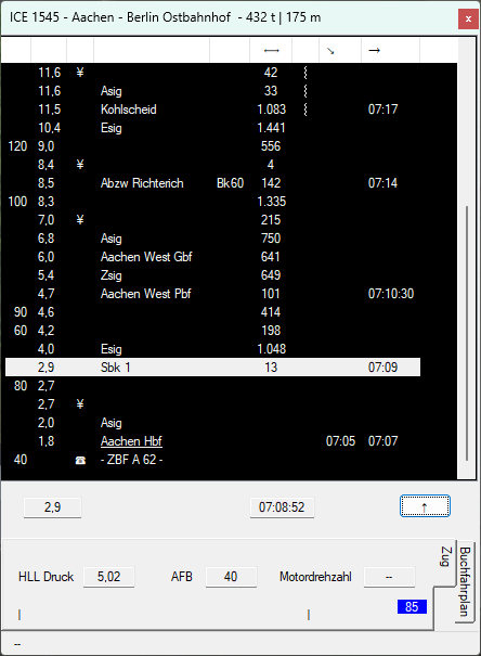- HUD: Grundlegende technische Informationen zu Ihrem Zug und den Sicherheitssystemen.